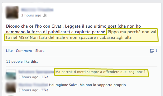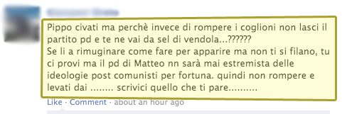 Ps. ecco due esempi di messaggi che ho trovato su Facebook. Due tra tanti, ma giusto per farvi capire a che livello di dibattito siamo arrivati.