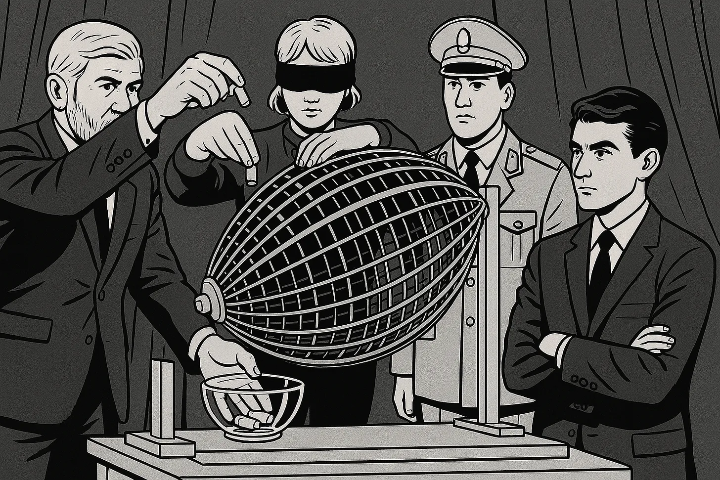 L’estrazione del Lotto si svolge in questo modo: c’è un’urna in acciao tutto dorato, su di un piedistallo, con ai piedi uno sgabello. Di fronte all’urna, delle poltrone. Per chi vuole assistere. Perché l’estrazione è pubblica e possono vederla tutti, con i propri occhi. A scanso di equivoci e complotti. A estrarre i bossolotti di acciaio freddo – che contengono i numeri fortunati – c’è un bambino. Bendato. Come la dea Fortuna. Scortato ai lati da due agenti della Guardia di Finanza e controllato a vista da funzionari e dirigenti dello Stato. Uno di questi ultimi, poi, ha una campanella che viene suonata per dare il via all’estrazione. E l’urna comincia a girare, il bussolotto estratto e il numero annunciato. Così per cinque volte.